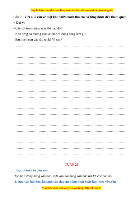 Câu 7 : Viết 4 -5 câu về một khu vườn bách thú em đã từng được đến tham quan. * Gợi ý: