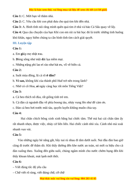 II. Dựa vào bài đọc, khoanh vào đáp án đúng nhất hoặc làm theo yêu cầu