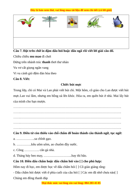 Câu 7. Đặt trên chữ in đậm dấu hỏi hoặc dấu ngã rồi viết lời giải câu đố.
