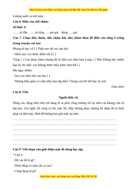 Câu 9. Viết đoạn văn giới thiệu một đồ dùng học tập. * Gợi ý: - Đồ vật đó là gì?