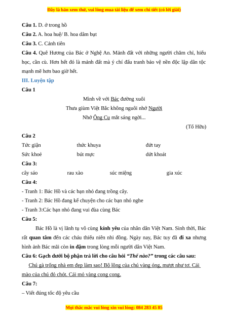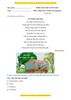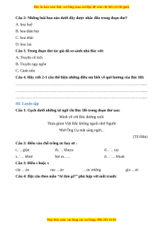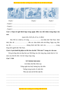 mào của chú đỏ chót. Cái mỏ vàng cong cong. Câu 7: Viết VỀ THĂM NHÀ BÁC Lên thăm nhà Bác hôm nay