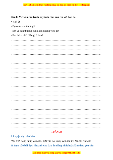 Câu 8: Viết 4-5 câu trình bày tình cảm của em với bạn bè. * Gợi ý: - Bạn của em tên là gì?