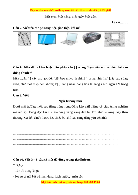 Câu 10. Viết 3 - 4 câu tả một đồ dùng trong gia đình em. * Gợi ý: - Tên đồ dùng là gì?