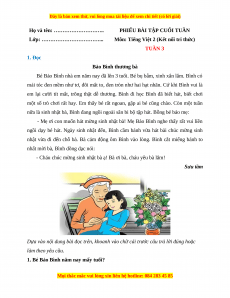 - Tailieugiaovien.com.vn giới thiệu phiếu bài tập cuối tuần môn Tiếng việt lớp 2 bộ Kết nối tri thức mới nhất năm 2023 nhằm giúp Giáo viên có thêm tài liệu tham khảo Tiếng việt lớp 2.