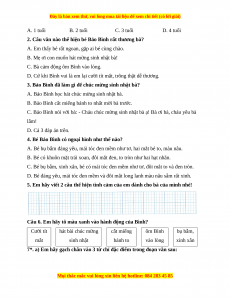 Dựa vào nội dung bài đọc trên, khoanh vào chữ cái trước câu trả lời đúng hoặc làm theo yêu cầu.