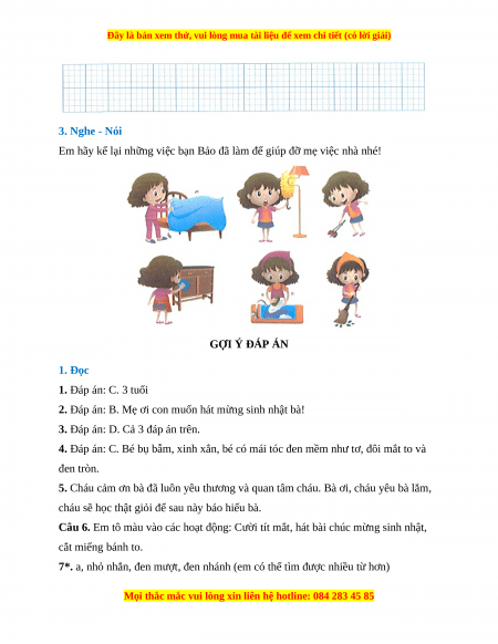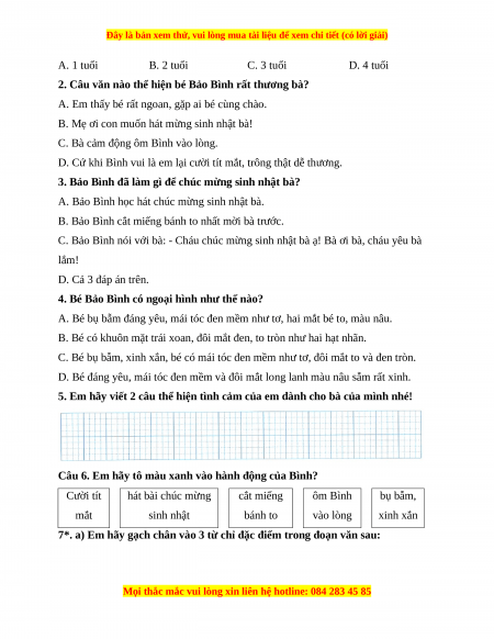 C. Bảo Bình nói với bà: - Cháu chúc mừng sinh nhật bà ạ! Bà ơi bà, cháu yêu bà lắm! D. Cả 3 đáp án trên.