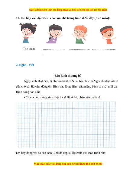 10. Em hãy viết đặc điểm của bạn nhỏ trong hình dưới đây (theo mẫu): Tóc xoăn