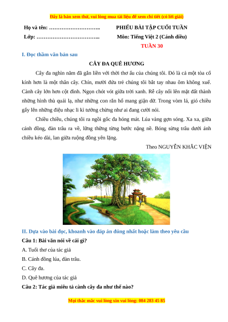 I. Đọc thầm văn bản sau CÂY ĐA QUÊ HƯƠNG