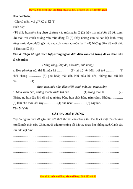 Câu 4: Chọn từ ngữ thích hợp trong ngoặc đơn điền vào chỗ trống để có đoạn văn tả các mùa: