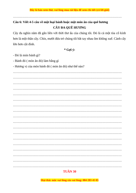 Câu 6: Viết 4-5 câu về một loại bánh hoặc một món ăn của quê hương CÂY ĐA QUÊ HƯƠNG