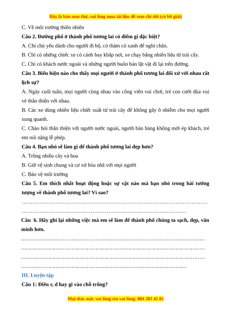 Câu 4. Bạn nhỏ sẽ làm gì để thành phố tương lai đẹp hơn?