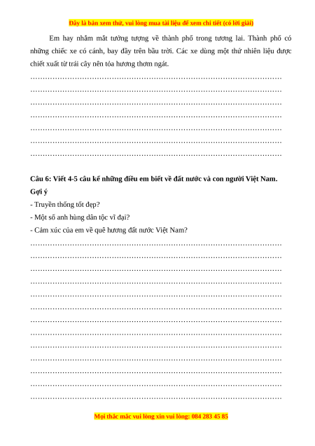 Câu 6: Viết 4-5 câu kể những điều em biết về đất nước và con người Việt Nam. Gợi ý