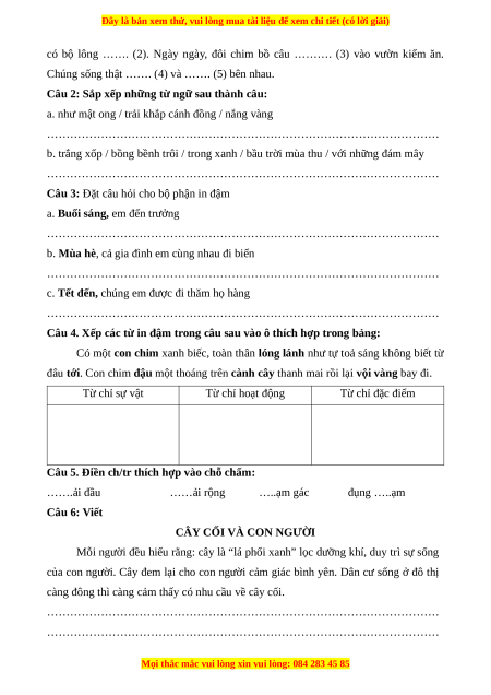 Câu 2: Sắp xếp những từ ngữ sau thành câu: