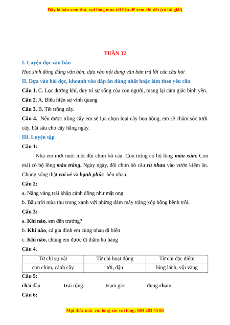 Môn: Tiếng Việt 2 (Chân trời sáng tạo) TUẦN 32