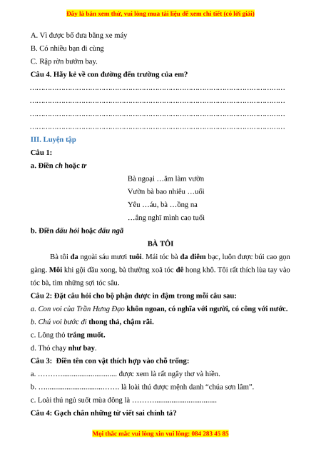 Câu 1. Bạn nhỏ trong bài đang đi đâu? A. Đi đến nhà bà ngoại B. Đi đến trường C. Đi sang nhà bạn chơi
