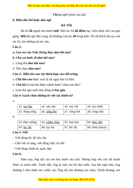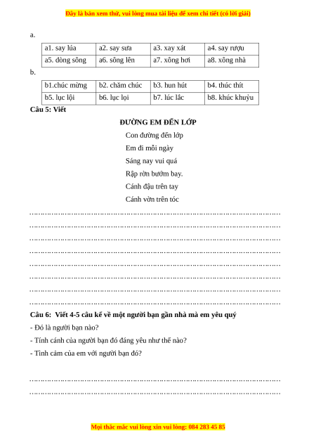 a. a1. say lúa a2. say sưa a3. xay xát a4. say rượu a5. dòng sông a6. sông lên a7. xông hơi a8. xông nhà b. b1.chúc mừng b2. chăm chúc b3. hun hút b4. thúc thít b5. lục lội b6. lục lọi b7. lúc lắc b8. khúc khuỷu Câu 5: Viết