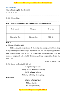 Dưới sông cá lội từng đàn tung tăng. Câu 4: Viết BÀI CA MÔI TRƯỜNG Mẹ! mẹ ơi cô dạy Bài bảo vệ môi trường