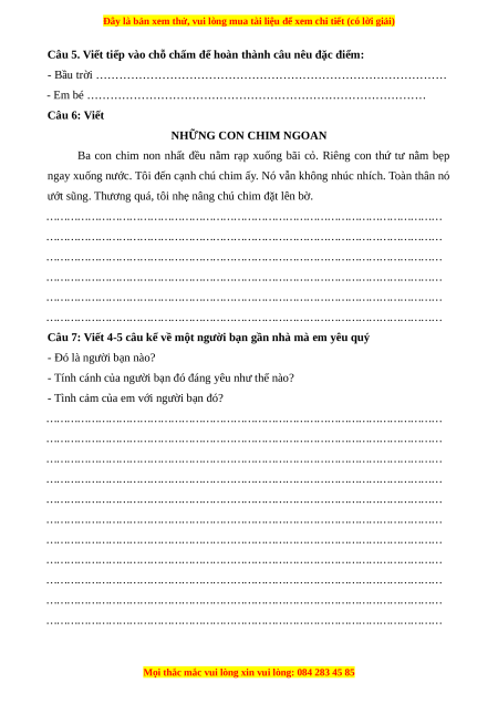 - Em bé …………………………………………………………………………… Câu 6: Viết NHỮNG CON CHIM NGOAN