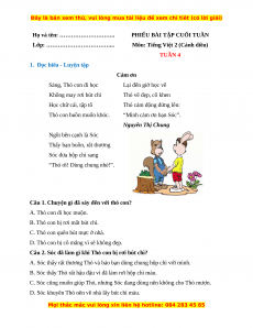 - Tailieugiaovien.com.vn giới thiệu phiếu bài tập cuối tuần môn Tiếng việt lớp 2 bộ Cánh diều mới nhất năm 2023 nhằm giúp Giáo viên có thêm tài liệu tham khảo Tiếng việt lớp 2.