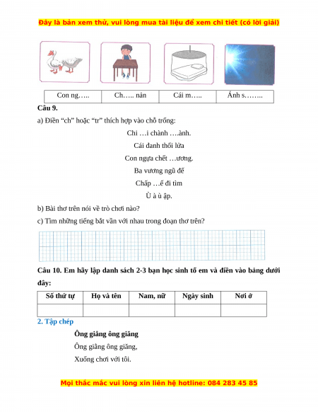 Câu 10. Em hãy lập danh sách 2-3 bạn học sinh tổ em và điền vào bảng dưới đây: Số thứ tự Họ và tên Nam, nữ Ngày sinh Nơi ở 2. Tập chép