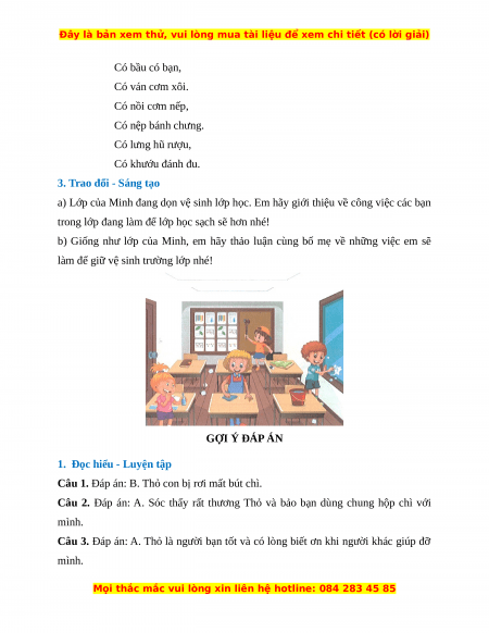 làm để giữ vệ sinh trường lớp nhé! GỢI Ý ĐÁP ÁN