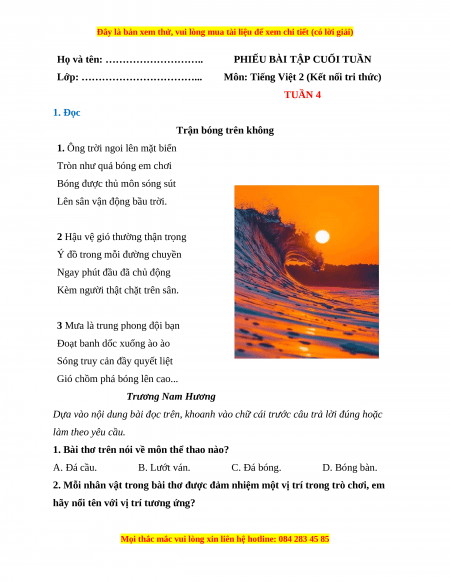 - Tailieugiaovien.com.vn giới thiệu phiếu bài tập cuối tuần môn Tiếng việt lớp 2 bộ Kết nối tri thức mới nhất năm 2023 nhằm giúp Giáo viên có thêm tài liệu tham khảo Tiếng việt lớp 2.