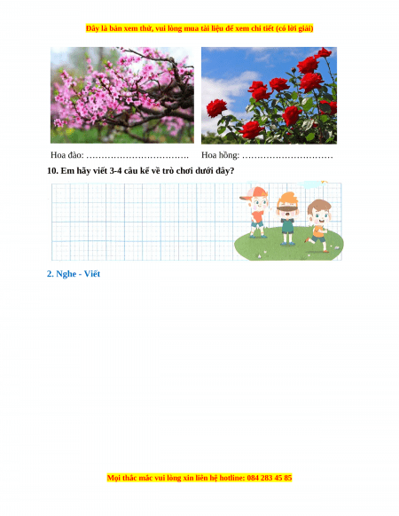 10. Em hãy viết 3-4 câu kể về trò chơi dưới đây? 2. Nghe - Viết
