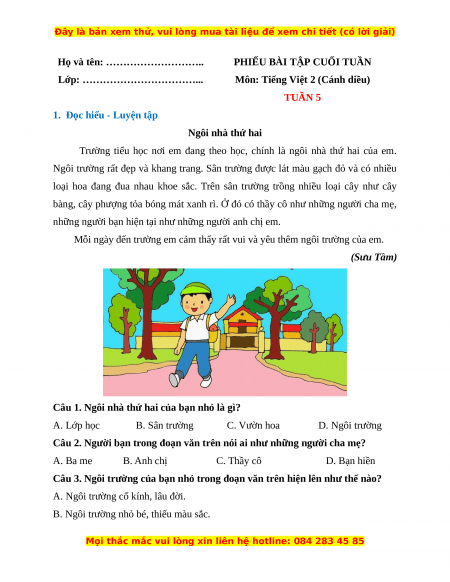 Câu 7. Ngôi nhà yêu dấu thứ hai của em là trường Tiểu học Lý Tự Trọng. Trường