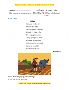 PHIẾU BÀI TẬP CUỐI TUẦN