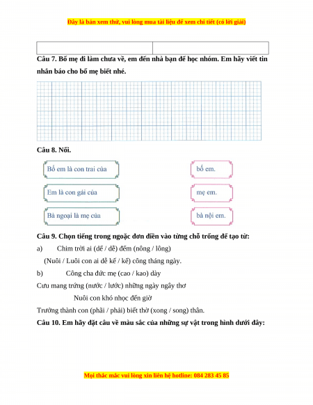 nhắn báo cho bố mẹ biết nhé. Câu 8. Nối.