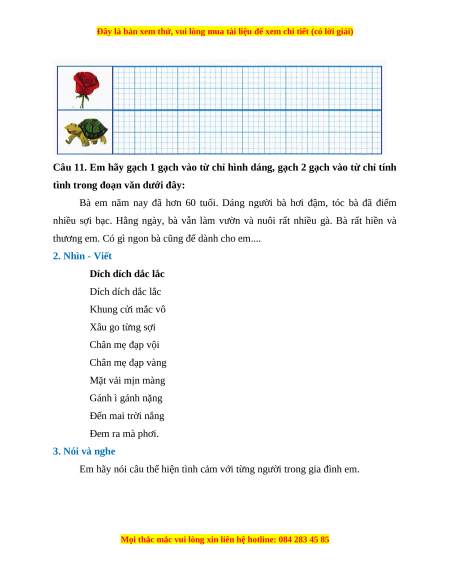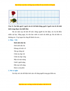Câu 11. Em hãy gạch 1 gạch vào từ chỉ hình dáng, gạch 2 gạch vào từ chỉ tính