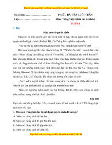 PHIẾU BÀI TẬP CUỐI TUẦN