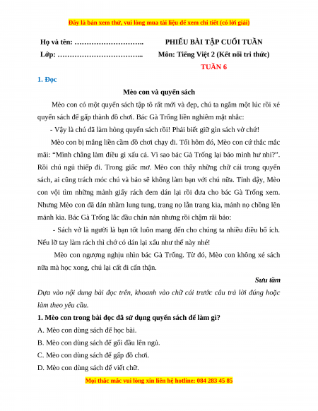 - Tailieugiaovien.com.vn giới thiệu phiếu bài tập cuối tuần môn Tiếng việt lớp 2 bộ Kết nối tri thức mới nhất năm 2023 nhằm giúp Giáo viên có thêm tài liệu tham khảo Tiếng việt lớp 2.