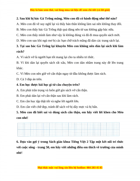 C. Vì Mèo con nên giữ vở cẩn thận ngay từ đầu không được làm rách. D. Cả 3 đáp án trên.