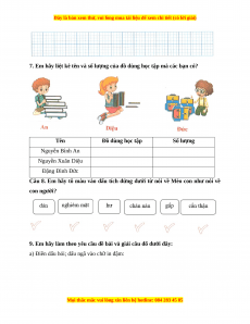 7. Em hãy liệt kê tên và số lượng của đồ dùng học tập mà các bạn có?