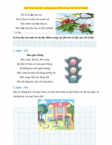 b) Em hãy tìm một từ chỉ đặc điểm trong câu đố trên và đặt câu với từ đó: 2. Nghe - Viết Đèn giao thông