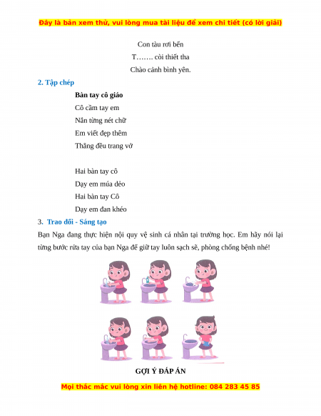 từng bước rửa tay của bạn Nga để giữ tay luôn sạch sẽ, phòng chống bệnh nhé! GỢI Ý ĐÁP ÁN