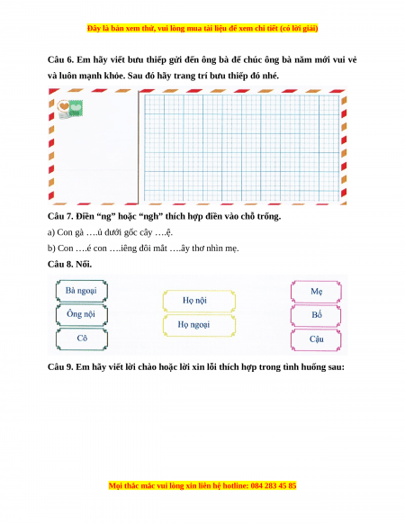 Câu 6. Em hãy viết bưu thiếp gửi đến ông bà để chúc ông bà năm mới vui vẻ