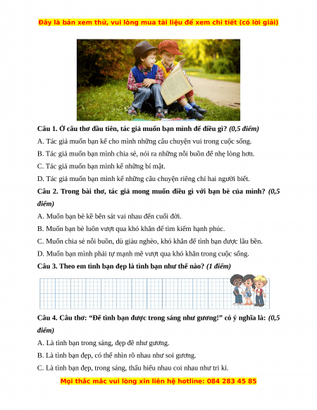 Câu 4. Câu thơ: “Để tình bạn được trong sáng như gương!” có ý nghĩa là: (0,5