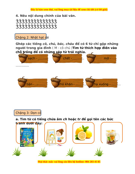 bận - ………. khó khăn - ……….. hạ xuống - ……… Chặng 3: Dọn cỏ
