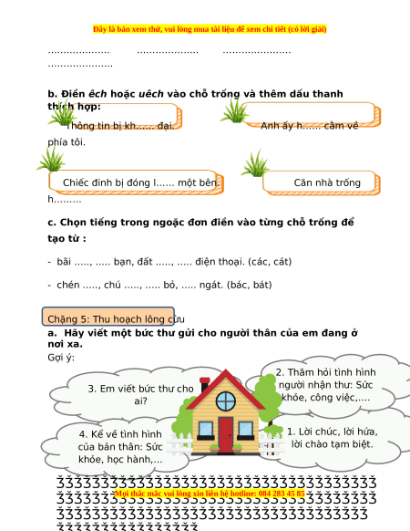 b. Điền êch hoặc uêch vào chỗ trống và thêm dấu thanh thích hợp: