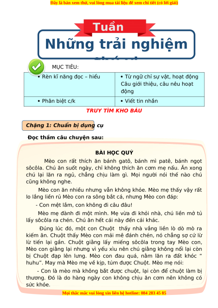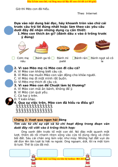 1.Mèo con thích ăn gì? (đánh dấu x vào ô trống trước ý đúng) Cơm mẹ Bánh ga tô Bánh mì Bánh rán Bánh ngọt sô cô nấu patê la