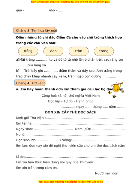 Em làm đơn này xin đề nghị thư viện cấp cho em thẻ đọc sách năm