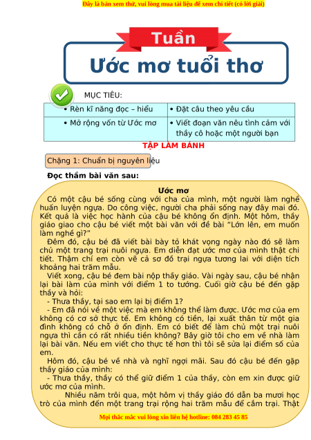 Tuần 10 Ước mơ tuổi thơ MỤC TIÊU: