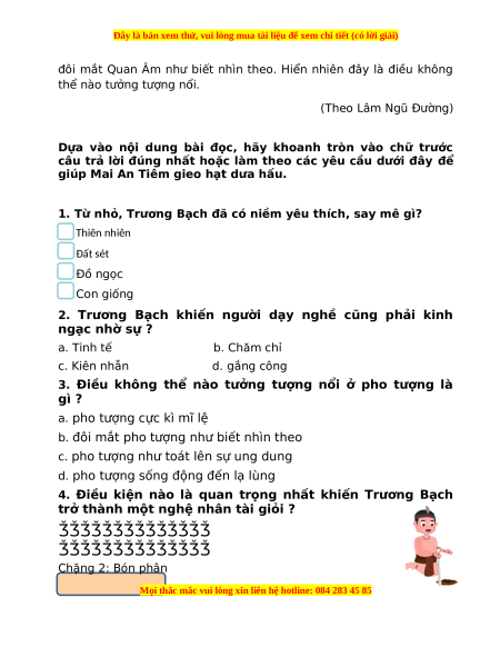 Dựa vào nội dung bài đọc, hãy khoanh tròn vào chữ trước