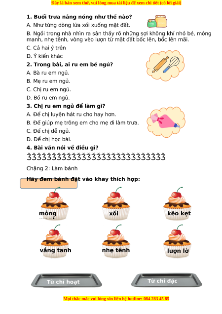 Hãy đem bánh đặt vào khay thích hợp: mỏng xối kẽo kẹt manh vắng tanh nhẹ tênh lượn lờ Từ chỉ hoạt Từ chỉ đặc động điểm