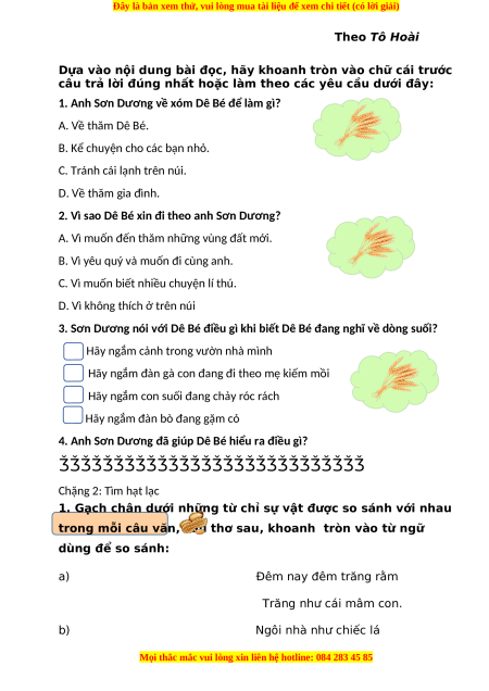 1. Anh Sơn Dương về xóm Dê Bé để làm gì? A. Về thăm Dê Bé.