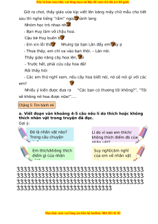 thích nhân vật trong truyện đã đọc. Gợi ý: Đó là nhân vật nào? Lí do vì sao em thích/ Trong câu chuyện