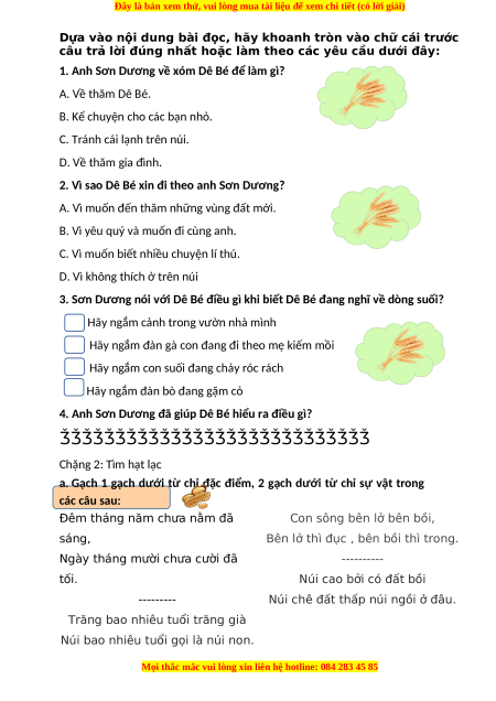 1. Anh Sơn Dương về xóm Dê Bé để làm gì? A. Về thăm Dê Bé.