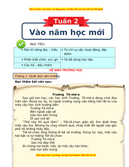 1. Khi các học sinh trường Tô-mô-e đang chơi đùa trên sân,
